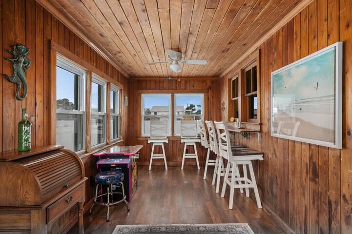 About this space Welcome to your beach-road base @MP 8 in Kill Devil Hills! This easy, walkable stay has 5 bdrms/2 bths (7 bds, sleeps10) welcomes one well-behaved dog, fenced in back yard. Steps to public beach across the street & steps to KDH Bath House; grab bikes across the street at the Bicycle Shop. Stroll to Pirates Beach Shop, Capt George’s Seafood Buffet, OBX Brewing Station (20% discount), StopNShop & Dairy Q. Wake to OBX sunrises, breathe the salty air, & settle in - your OBX getaway...