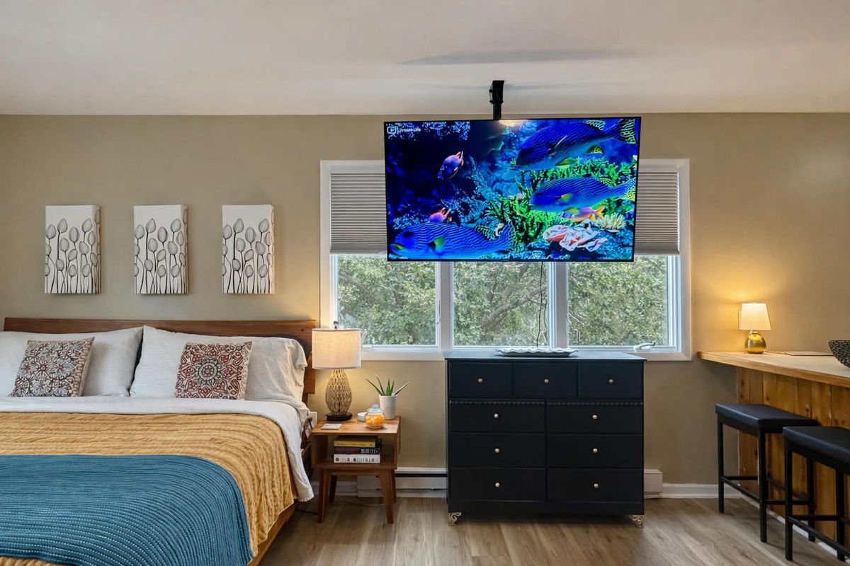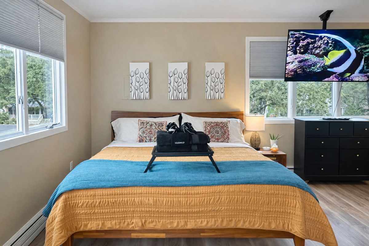 House rules You'll be staying in someone's home, so please treat it with care and respect. Checking in and out Check-in after 4:00 pm Checkout before 10:00 am Self check-in with keypad During your stay 3 guests maximum Pets allowed Quiet hours 10:00 pm - 7:00 am No parties or events No commercial photography No smoking Additional rules 🐾 Pet Rules Up to 2 pets allowed, $25 per pet per night — be sure your reservation reflects your pet count. A 3rd pet may be approved in advance with an added fee — message us before booking. Undisclosed pets will incur standard fees plus $15 per night via Airbnb Resolution Center. Pick up after your pet (bag & trash it outside properly). Pets must be leashed outdoors — no roaming. No pets in the bed unless you bring your own bedding and notify the host. Host dog Sandy Banks may be on the property. If your pet is aggressive, this may not be the best fit. Do not open any windows. 🏡 House Rules All communication must stay on Airbnb messages (do not use hosts cell number). Quiet hours: 10 PM – 7 AM Have a 3rd guest? $25/night 1 vehicle per reservation. A 2nd may be allowed with prior approval BEFORE booking. Please treat linens & towels with care (sunscreen & makeup stain). Check-out is 10 AM sharp. Unapproved late departures will be charged $50 per 15 minutes. No indoor fires or candles. If you smoke outside, please dispose of cigarette butts properly. Left items? We’re happy to ship them for shipping cost + $10 handling fee (L/F items held for 30 days). -No refunds or change of dates related to weather. Show more Before you leave Additional requests PLEASE SEE THE CHECK OUT GUIDE POSTED IN THE KITCHEN