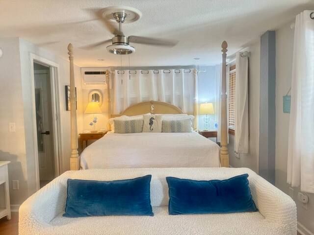 House rules You'll be staying in someone's home, so please treat it with care and respect. Checking in and out Check-in after 4:00 pm Checkout before 10:00 am Self check-in with keypad During your stay 2 guests maximum Pets allowed Quiet hours 10:00 pm - 8:00 am No parties or events No commercial photography No smoking Additional rules PETS: Up to one pet - approval for more than one pet required prior to booking. Pet fee is $10 per night per pet. Pet Rules: - Dispose of your pets waste, secure in a bag in the outside property trash can - Your pet cannot roam free outside, must be on a leash when outside - Your furry friend is not allowed in the bed or on other furniture, if you want to sleep with your pet please bring your own sheets and blankets and shoot the host a message. An excessive cleaning fee of $100+ will be requested if it is found that animal has been on sheets/blankets or any furniture. - Do not feed your dog out of the dishes/utensils provided in the Airbnb - Do not leave your dog alone for extended periods of time - We expect some barking, however, if barking is excessive we will be reaching out for you to come back to take care of the issue. There are other Airbnb's on the property and barking noise needs to be kept to a minimum. All communications need to stay on the Airbnb message platform. Please do not use my cell phone number. Check out is by 10 am sharp Please respect the WHITE sofas and expensive WHITE lace linens on the bed. If you have a spill or soil the fabrics, please leave for me to clean it off. Let me know what the substance is. If the damage will not come out, you will be responsible for replacement value. Quiet times are between 11pm and 7am. No loud noise, or excessive drinking or drugs allowed. Only park in designated parking. PARKING IS FOR ONE CAR. Park only in your designated parking area. You will get ticketed if your tires are on the street. Make room for other guest parking please. PLEASE DO NOT TAKE ANY TOWELS TO THE BEACH or for outside use. PLEASE DO NOT BACK INTO NEIGHBORS MAILBOX OR USE HER DRIVE FOR TURNAROUNDS. No visitors; only registered guests up to 2 people on property at any time. Do not have other people not associated with the reservation show up to property for any reason. There is a clothes line by the outdoor shower . Please do not hang items visible to the road. Rinse feet at the water hose in front of the house before coming in from the beach or use outdoor shower. NO SMOKING. No interaction with neighbors please. NO refunds or change of dates related to weather. Show more Before you leave Additional requests See Check Out Guide posted on the refrigerator.